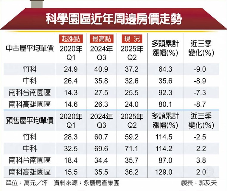 房地產業者指出,股市持續創高,然而房市動能卻相當低迷,「股熱、房冷」差異之大,歷年僅見,房貸資金水龍頭緊縮是資本市場資金熱潮未能流入房市的主因,過去幾年房市多頭,全台房市幾乎由竹科、中科、南科三大園區領漲,投資買盤熱絡、自用買盤追價下,相對低基期的房價飆漲,在投資買盤退散、自用買盤追價無力下,即使科學區產值、企業獲利持續攀高,高所得族群也不願將資金投入房市。