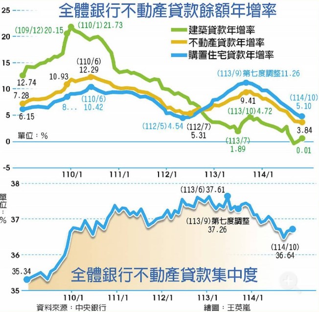 央行在2024年8月中旬請銀行自主管理未來一年的不動產貸款總量目標,並於2024年9月第七度調整選擇性信用管制措施。實施以來,銀行受限貸款成數下降,民眾看漲房價預期心理趨緩,房市交易持續降溫,房價漲勢減緩。