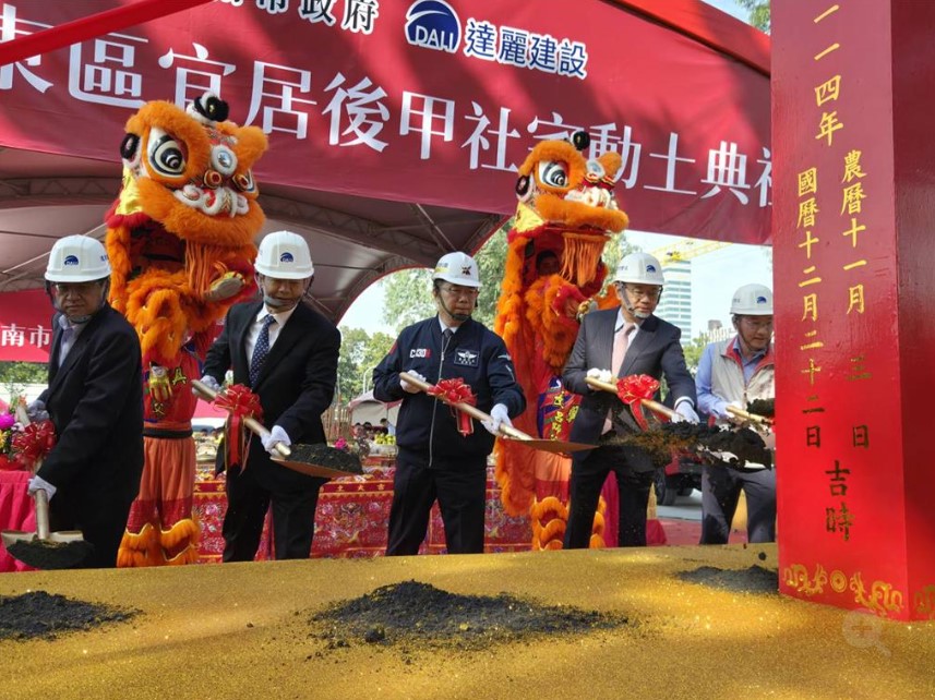 達麗建設台南平實特區公辦都更案,回饋台南市政府的社宅「宜居後甲」,22日由台南市長黃偉哲、國土署長吳欣修、達麗建設董事長謝志長、海悅總經理曾俊傑等人主持動土。
