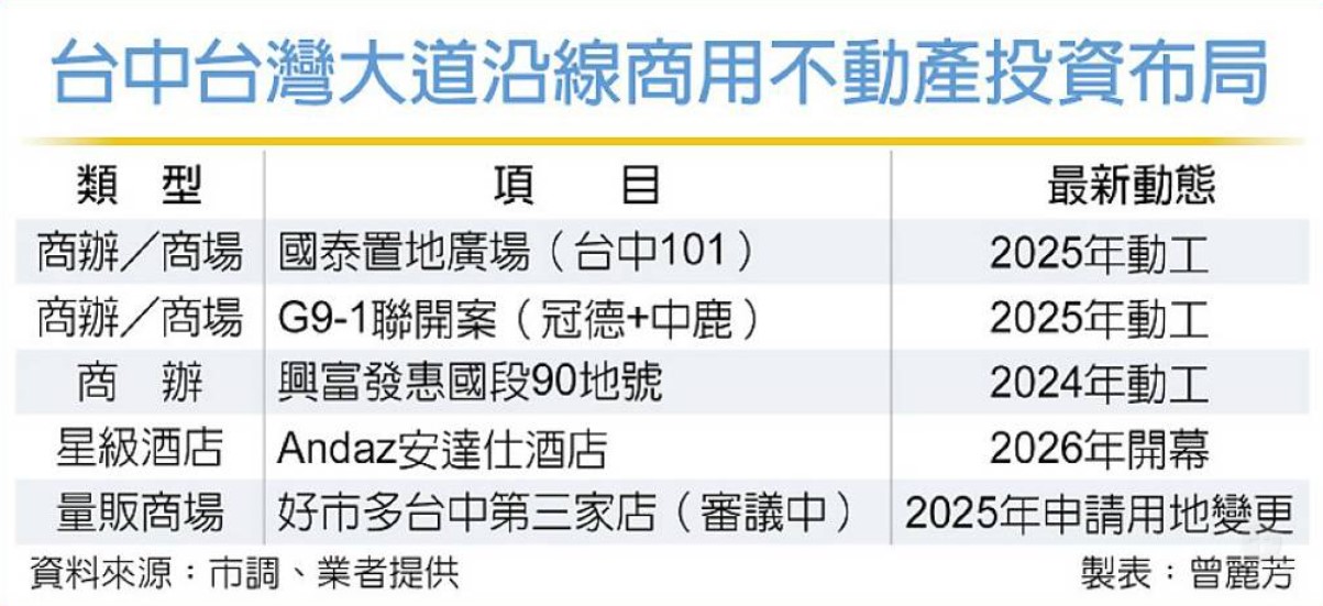 商辦市場同樣火力全開,「允將TST台灣之鑽」、興富發「惠國段90地號」等摩天商辦案,均坐落在台灣大道上。軌道經濟亦同步發酵。