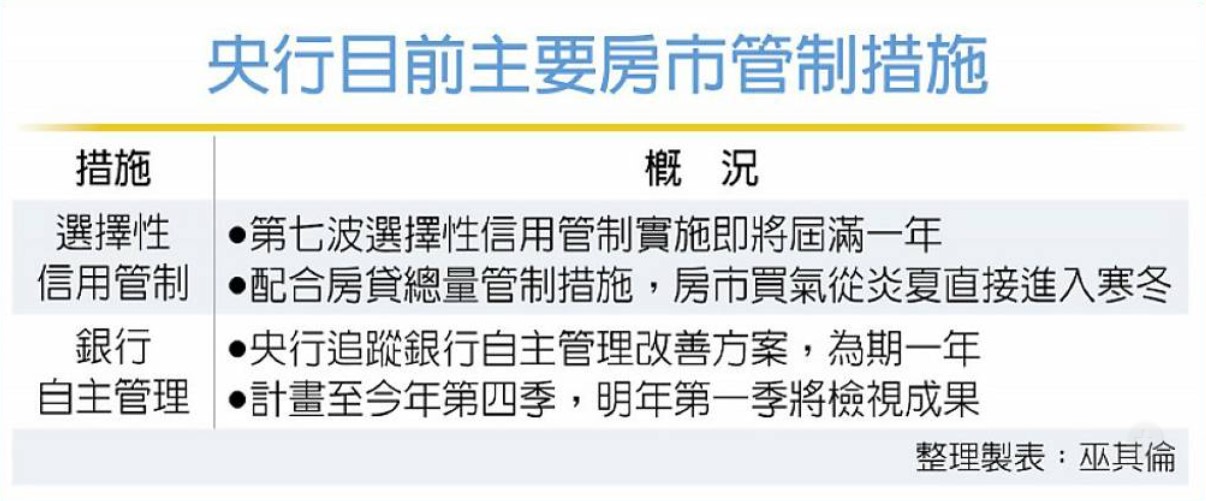 大型指標房貸銀行主管指出,目前央行屢被傳找銀行了解房貸現況,未來可望以口頭宣示,有望稍微放寬各銀行去年下半年提出的自主不動產集中度增長情形,也就是鎖定自住、首購、政策性房貸等方面稍微放寬,有機會緩解目前市場房貸塞車問題。