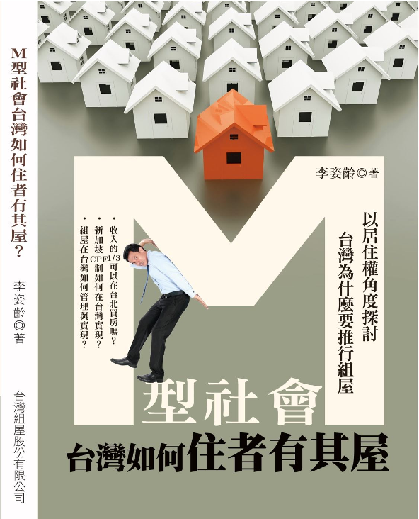 【書名】M型社會-台灣如何住者有其屋 【作者】 李姿齡 【企劃圖書】誠石設計有限公司 【ISBN】978-986-97852-0-4 【簡介】 收入的1/3可以在台北買房嗎? 新加坡CPF制如何在台灣實現? 組屋在台灣如何管理與實現? 每個人心中都有自己理想中的居住環境,但理想與現實的差異, 這些都涉及台灣地區家庭與人口結構的關係, 對於住宅的需求與考量,以及灣住宅市場的改變。 借鏡新加坡組屋的政策,分析組屋是否能實現我妹要的居住願景。 讓M型化社會的台灣青年住者有其屋…… 以居住權的角度探討台灣為什麼需要推行組屋? 【面臨課題】 1.房價所得比高 2.空屋率高 3.居住權缺乏保障 4.台灣地產成為投資天堂 5.缺乏長期性政策 |