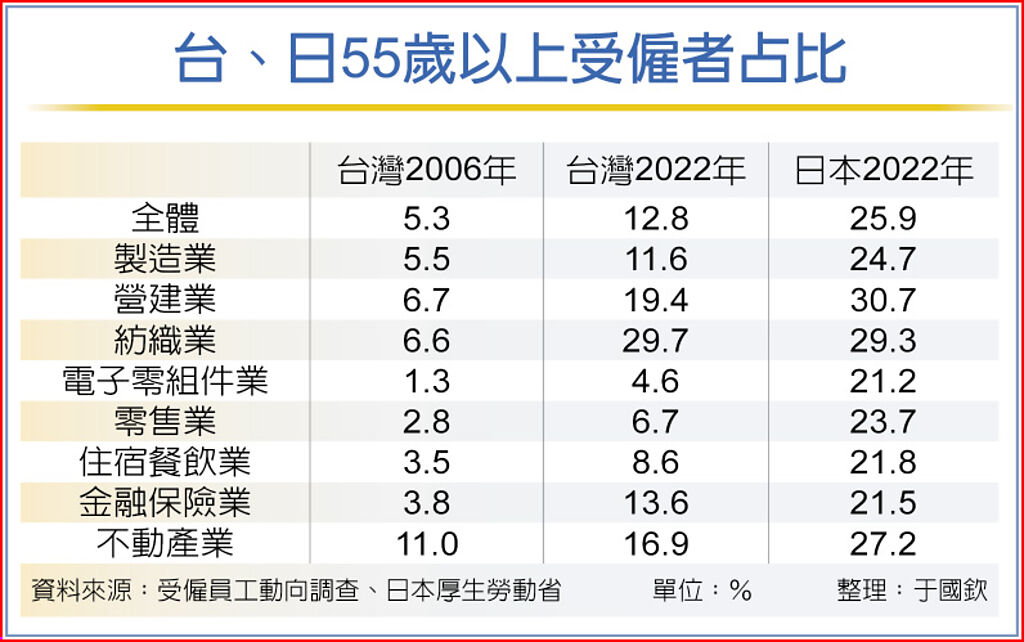 各行業都高齡化了 台灣已連續兩年出生人口不及14萬,社會的老化很快會變成產業的老化,日本今天的處境將