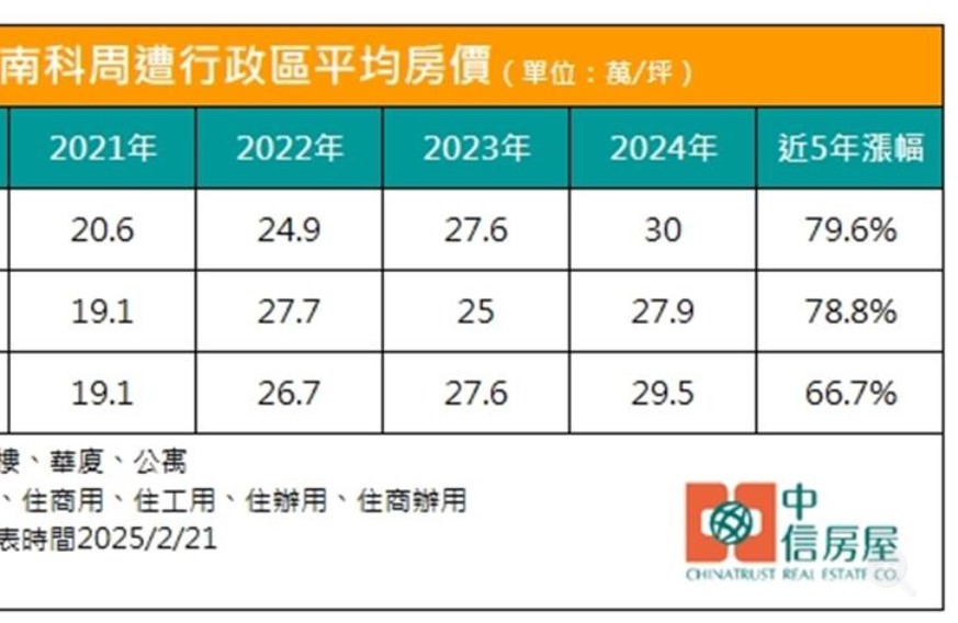 南科產業效應發威 這兩區中古屋5年漲近8成
