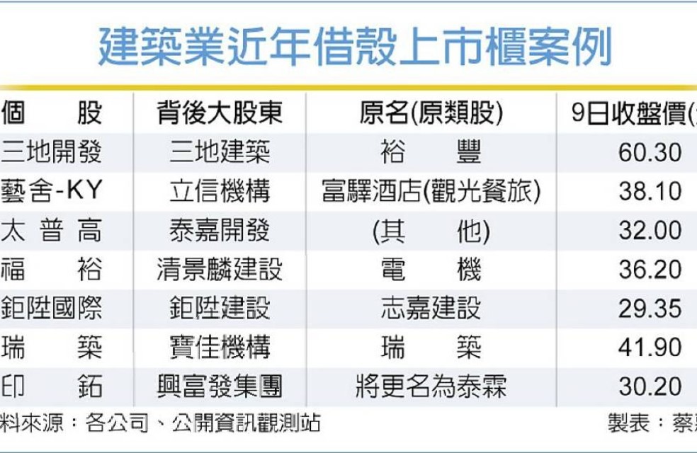 房地產業者躍居「借殼大戶」近20年吃下逾50家上市櫃公司