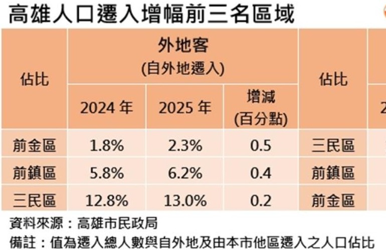 產業發展和房價合宜吸引移居 高雄前金、前鎮和三民區最夯