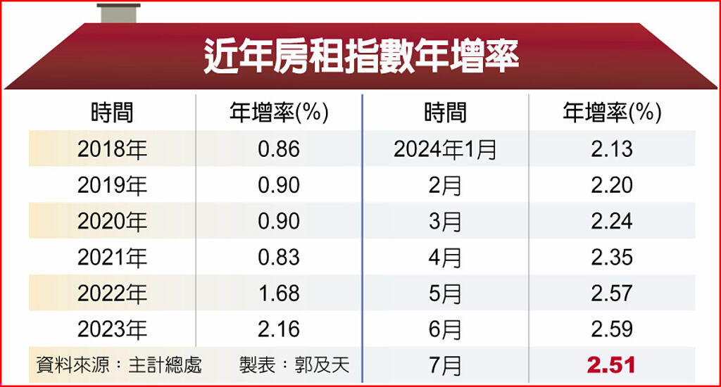 租金指數年增率 連三月逾2.5% 通膨壓力大,顯示租金漲幅呈擴大趨勢
