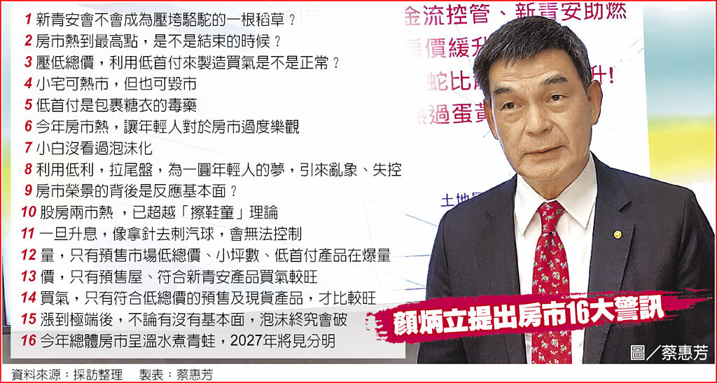 顏炳立:今年房市溫水煮青蛙 提16大警訊,2027年見真章 預期下半年低首付產品仍穩漲難跌