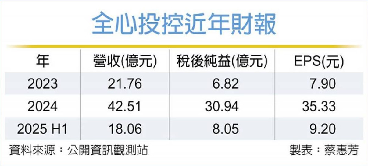 全心投控(2718)上半年稅後純益8.05億元、EPS達9.20元,營收獲利均改寫同期新高,更居上半年營建股「EPS王」。全心投控22日舉行法說會表示,今年主要業績為「晶悅合一」自建案貢獻,全年業績有機會維持高水準,未來將加碼出租性商用不動產,以挹注長期穩定的租金收益。