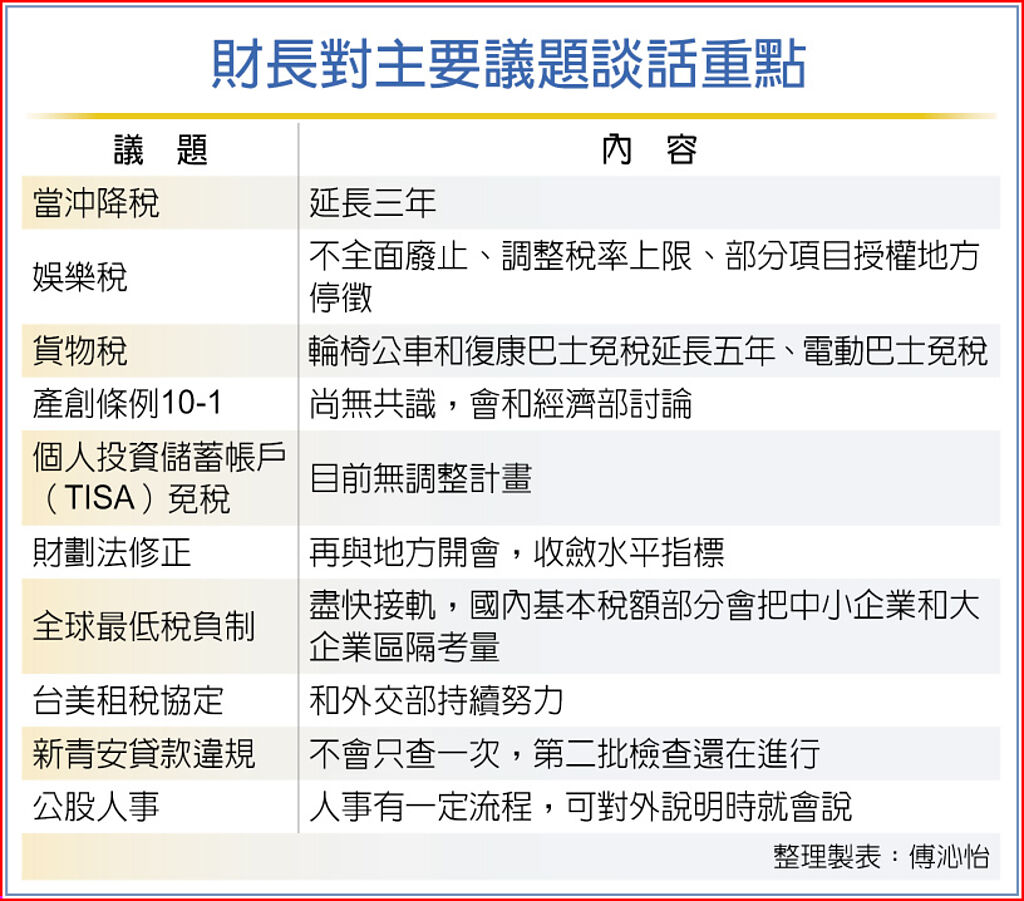 她強調,產創相關抵減所以有租稅優惠期,就是希望加速企業轉型的腳步,針對延長企業抵減,財政部的態度也是產業轉型應該「再往前推進」,例如把5G改為6G,或在智慧機械加入AI,且必須符合有效性、必要性和可行性。
