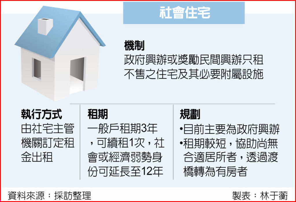 至於直接興建社宅方面,實際上涉及大量資金成本,因此,董建宏說,目前確實在評估要引進民間資金興建,或提供低成本可長期居住的「使用權社宅」方案;他表示,使用權宅的設定對象可能是長者換宅或已有家庭者,需要安定居住以穩定成家。