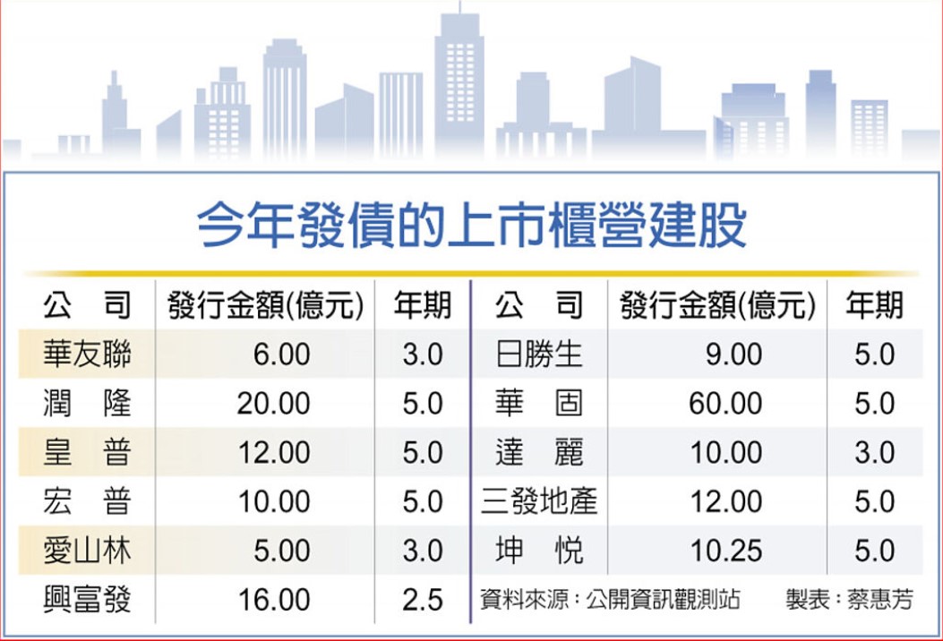 建商指出,最近多家上市櫃建商陸續發債,因為同業普遍都感受到銀行資金一直收,發債是進可攻退可守的籌資管道。