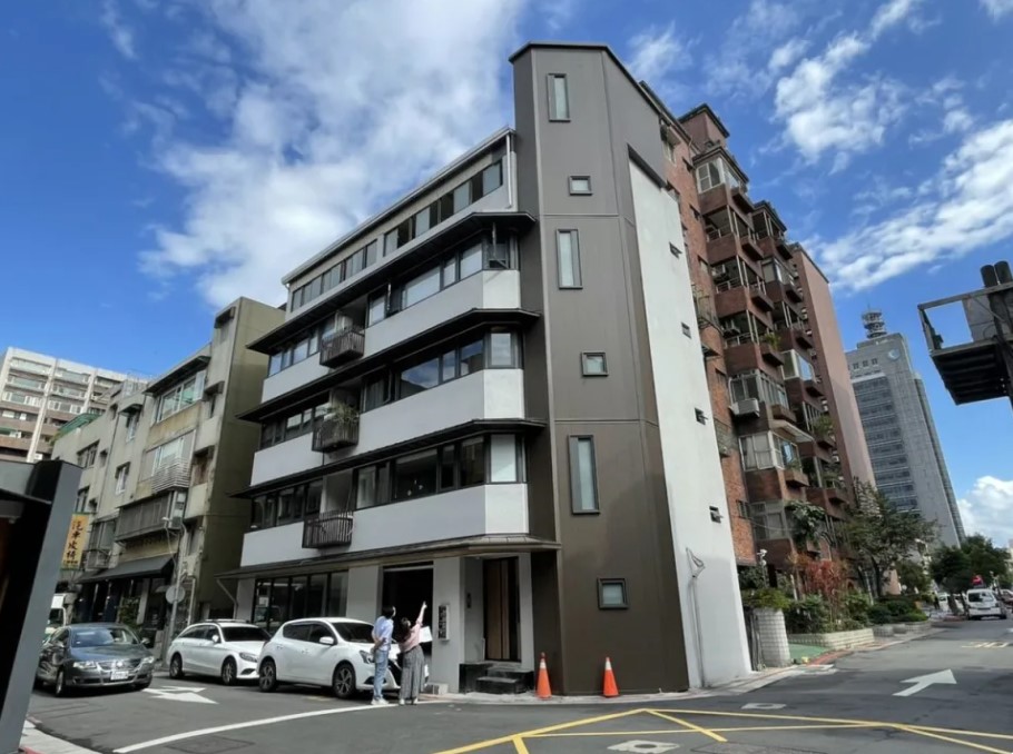 因應社區純淨低調的氛圍,本案設計時挑選了較為純淨的淺色仿石漆塗料及單純的深棕色皮紋氧化鋁合金,遠看屬大地色系,近看,其金屬板紋理閃閃發光,低調中凸顯其特殊性,引來不少來附近品嘗美食的網美將其皮紋氧化鋁合金乾淨的牆面當為背景來自拍之特有場景。另建築物立面選用淺色仿石漆塗料,未來不再衍伸磁磚剝落等公共危險議題,且其有自潔性,增進市容景觀,歷久彌新。