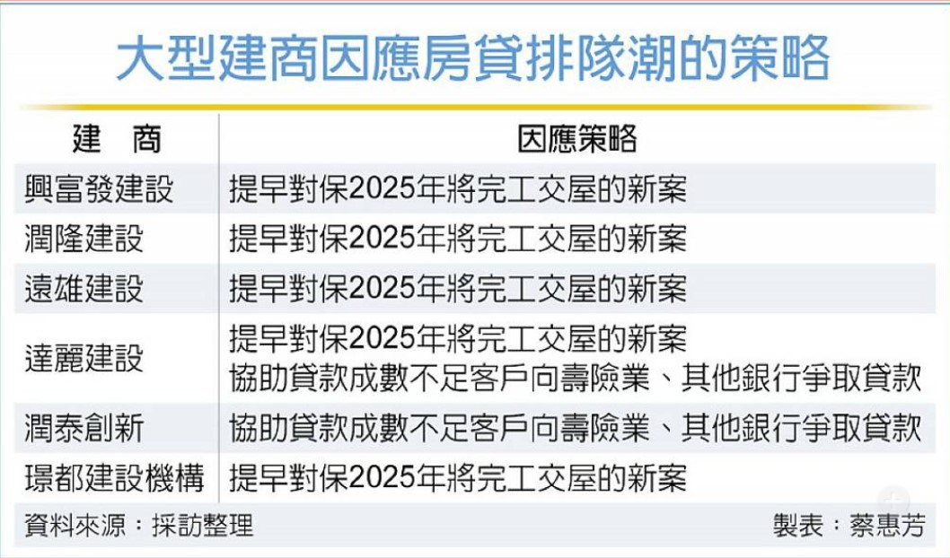 8月以來房貸排隊潮災情不斷擴大,包括利率被拉高、額度被砍、排隊、被銀行拒收等,對於2025年完工交屋量將放大的建商來說,提早卡位搶房貸已成為新顯學。