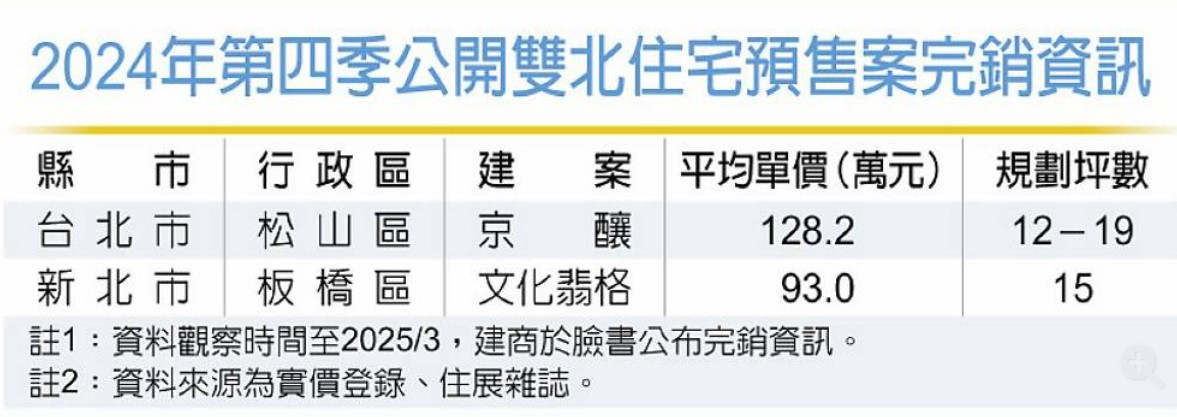住展分析,目前房市的順銷密碼,即「誠意價」。以完銷案「文化翡格」來說,為15坪套房的規劃,每坪開到9字頭,「京釀」也是20坪內的小宅規劃,每坪開價120萬元,雖然單價都不低,但總價有機會壓在1,000多萬元,在「總價為王」時代,仍戰勝冷氣團。