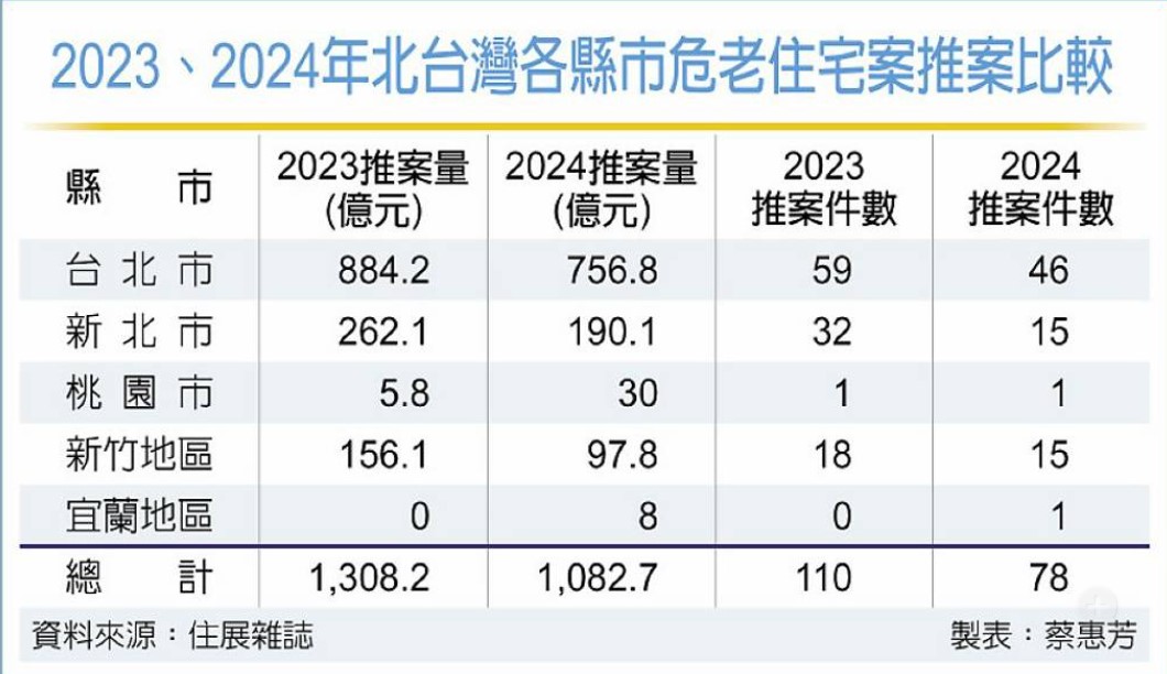 危老重案條例實施超過八年,危老案全台遍地開花。住展雜誌統計,去年北台灣危老重建住宅案推案量約1,082.7億元,其中雙北市就囊括87%、約達950億元。今年北市將有不少危老案將登場,包括「西華璞園」、「科達大巨蛋案」等總銷各約100億元的大案,大同、中山、中正、士林等區,後續也將有不少亮點危老案籌備推出。
