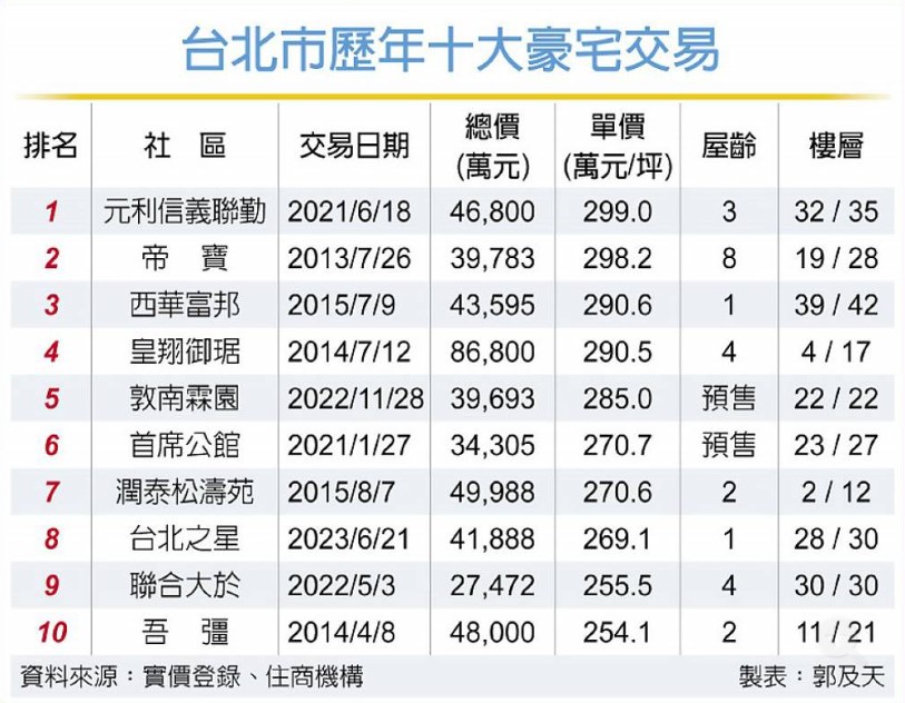 大家房屋企研室主任賴志昶表示,台北市蛋黃核心地段新案推案量有限,近年來新豪宅供給少,而且興建頂級豪宅的開發商多無急售壓力,創高價案件數量減少。