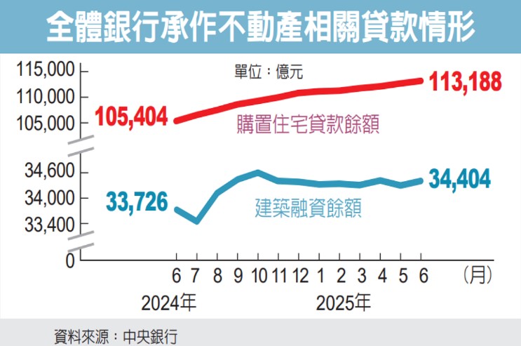央行統計6月全體銀行購置住宅貸款餘額為11.31兆元,再創歷史新高,較5月增加490億元,年增為7.38%,年增率是2024年1月以來新低;顯示增速放緩,但總餘額仍持續墊高,反映市場上仍有新房貸進入。