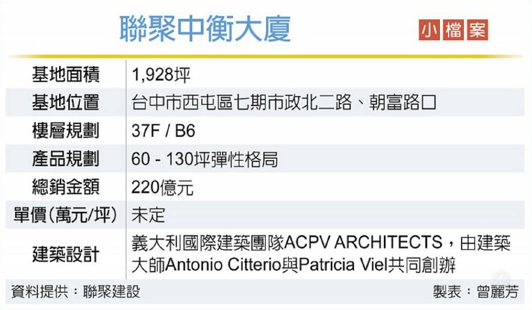 近年,台商回流設企業總部與高科技產業擴張,辦公空間成為企業形象與吸才關鍵,台中七期新市政中心除是豪宅聚落外,商辦亦成為企業置產熱區。2025年首季台中商辦交易年增5%,逾7成集中七期新市政中心,顯示核心地段吸引力與無可取代性。為此,聯聚建設繼「中雍」、「中維」兩棟七期地標級豪辦後,攜手義大利國際建築團隊ACPV ARCHITECTS,第四季推出第三棟豪辦新地標「聯聚中衡大廈」搶市。