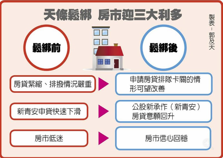 新青安政策排除在銀行法72-2條不動產放款比率限制之外,房地產業者認為,「房市風向變了」,申請房貸排隊卡關的情形可望改善,此外,也會有房市信心回穩、公股新承作意願回升與低總價產品受惠等。